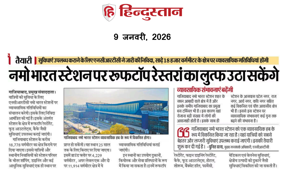 नमो भारत स्टेशन पर रूफटाॅप रेस्तरां का लुत्फ उठा सकेंगे: हिन्दुस्तान