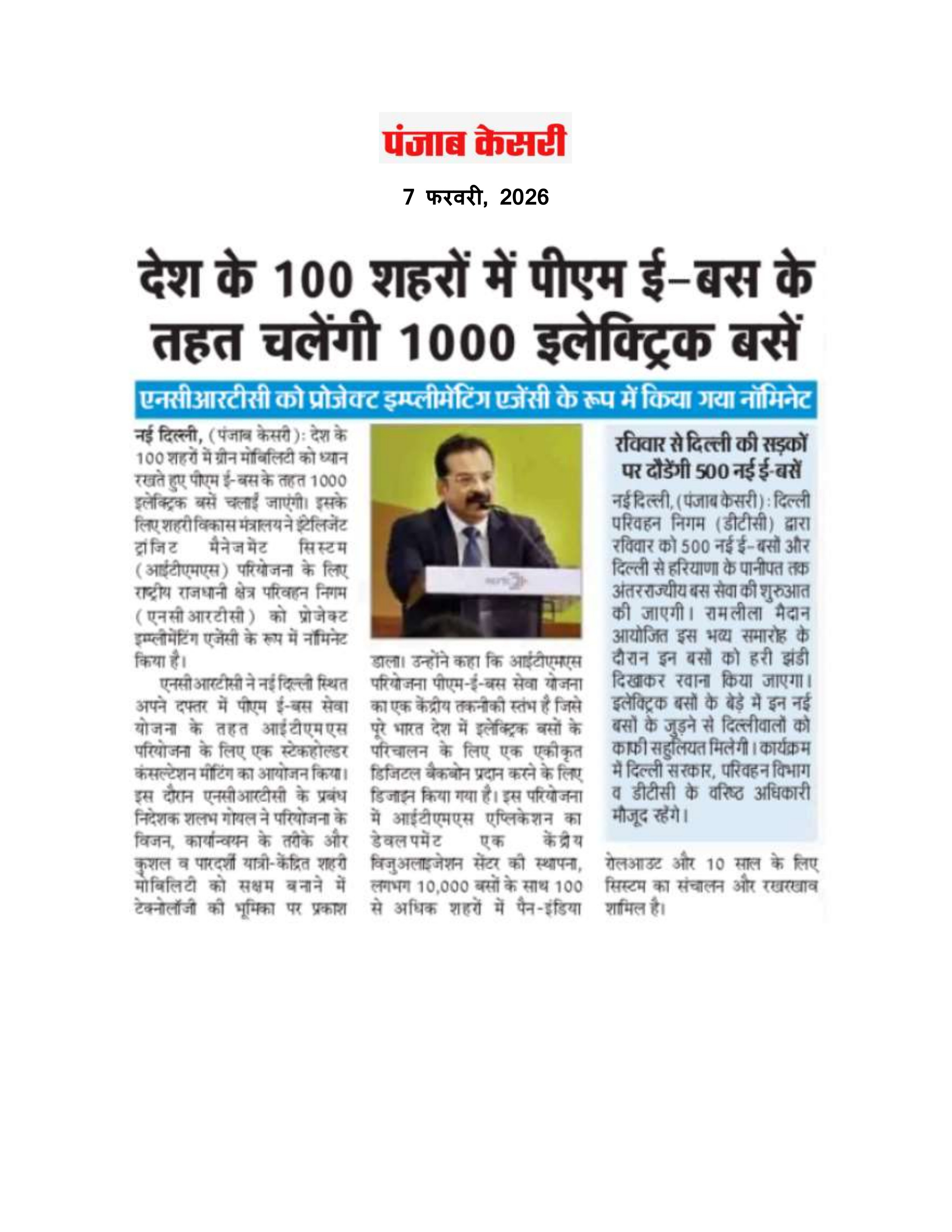 देश के 100 शहरों में पीएम ई-बस के तहत चलेंगी 1000 इलेक्ट्रिक बसें : पंजाब केसरी
