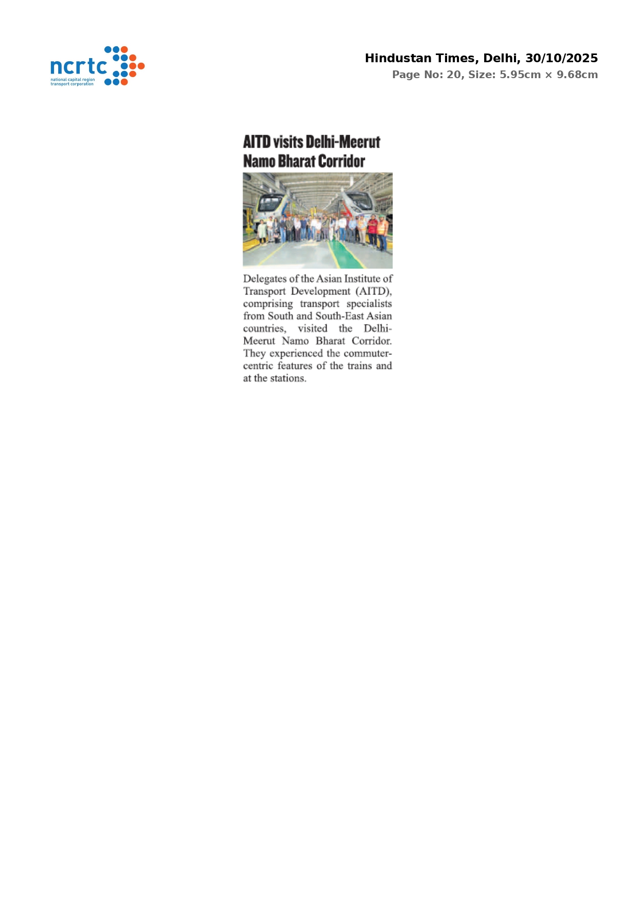 AITD visits Delhi-Meerut Namo Bharat Corridor : Hindustan Times