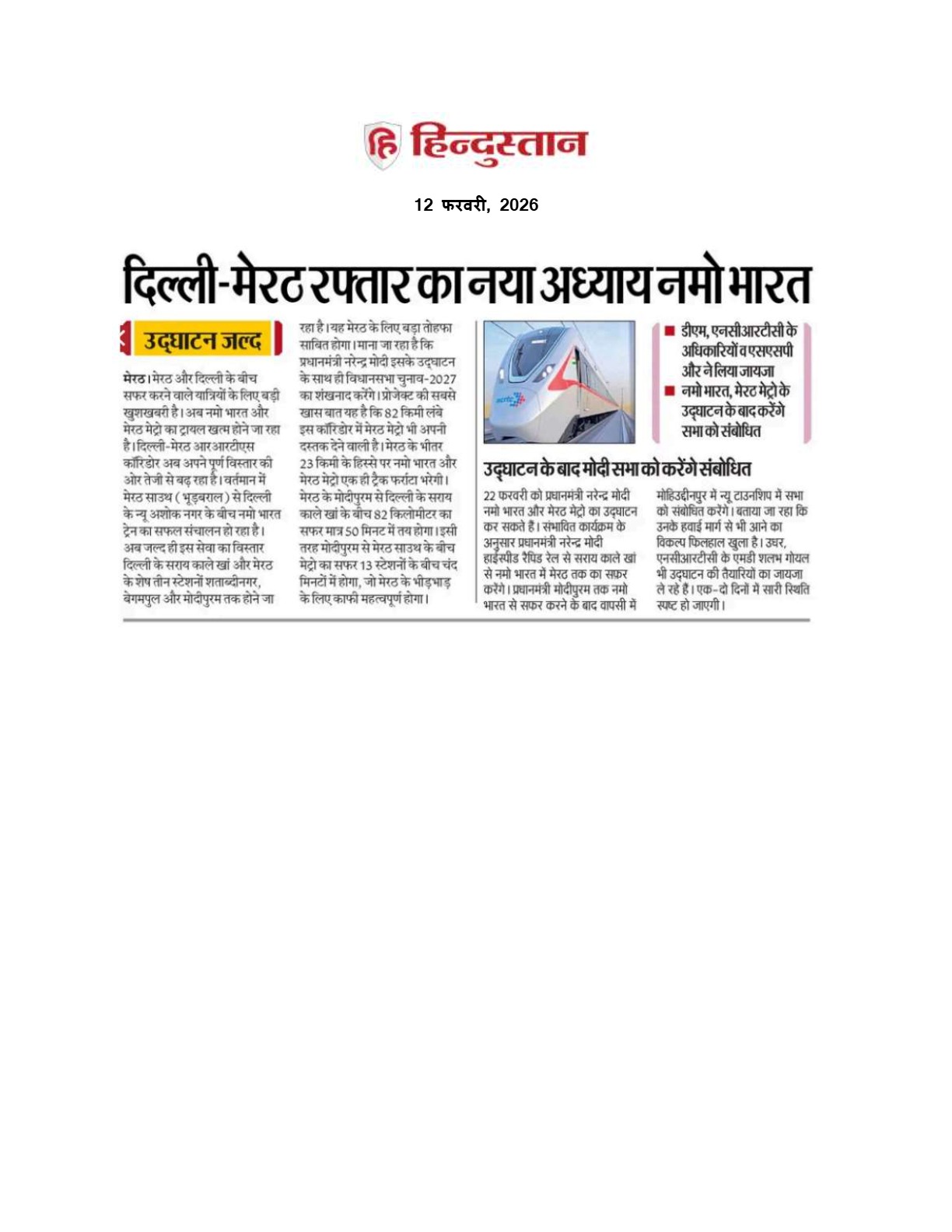 दिल्ली-मेरठ रफ़्तार का नया अध्याय नमो भारत : हिंदुस्तान