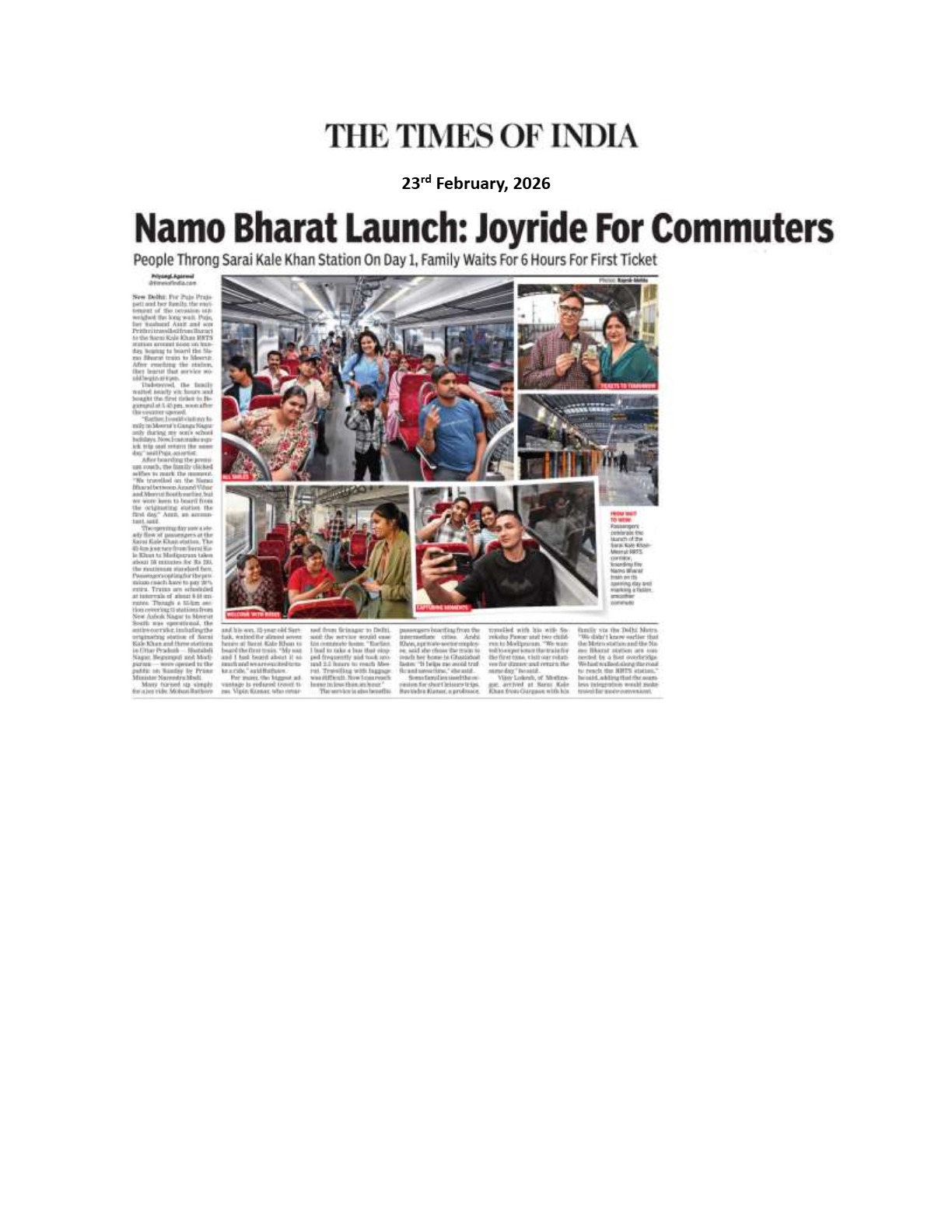 Namo Bharat Launch: Joyride For Commuters : The Times of India