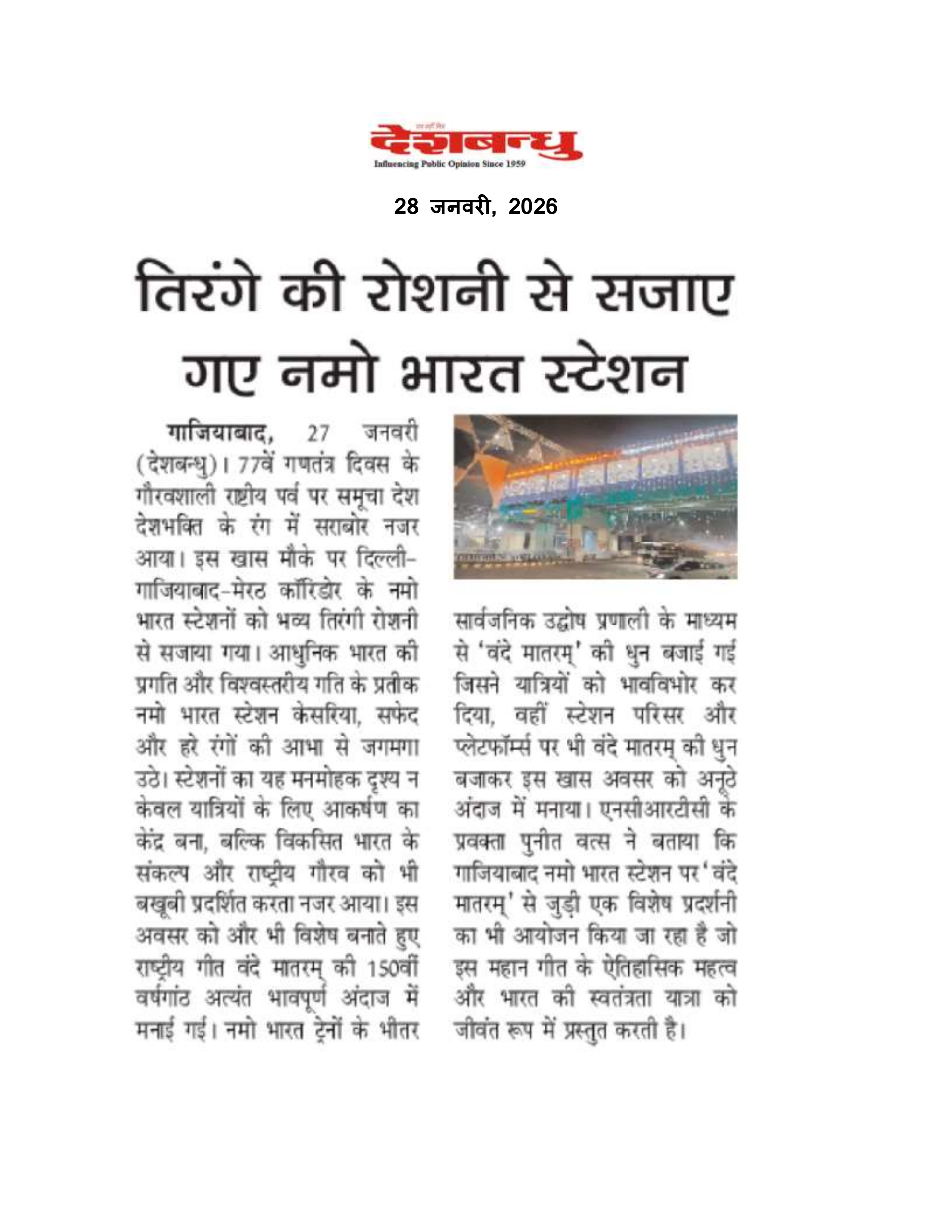 तिरंगे की रोशनी से सजाए गए नमो भारत स्टेशन : देशबंधु