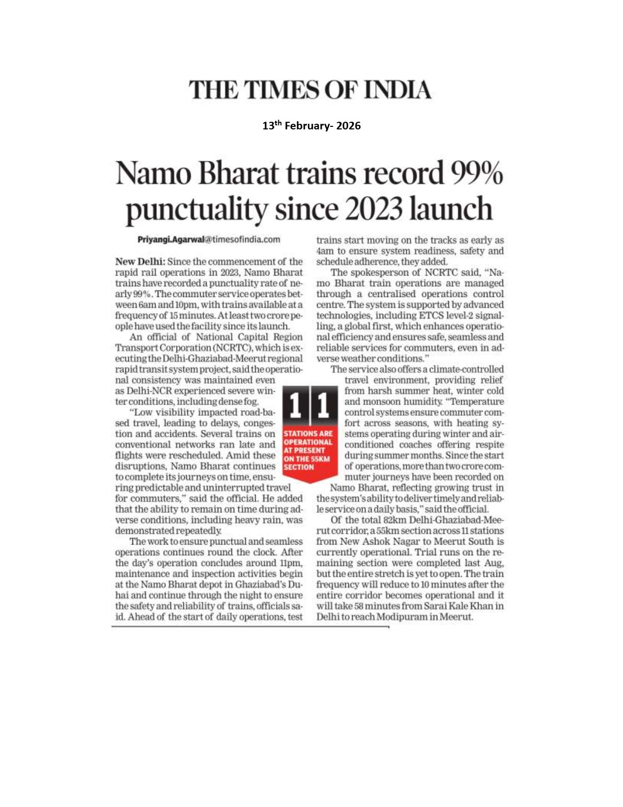 Namo Bharat trains record 99% punctuality since 2023 launch : The Times of India