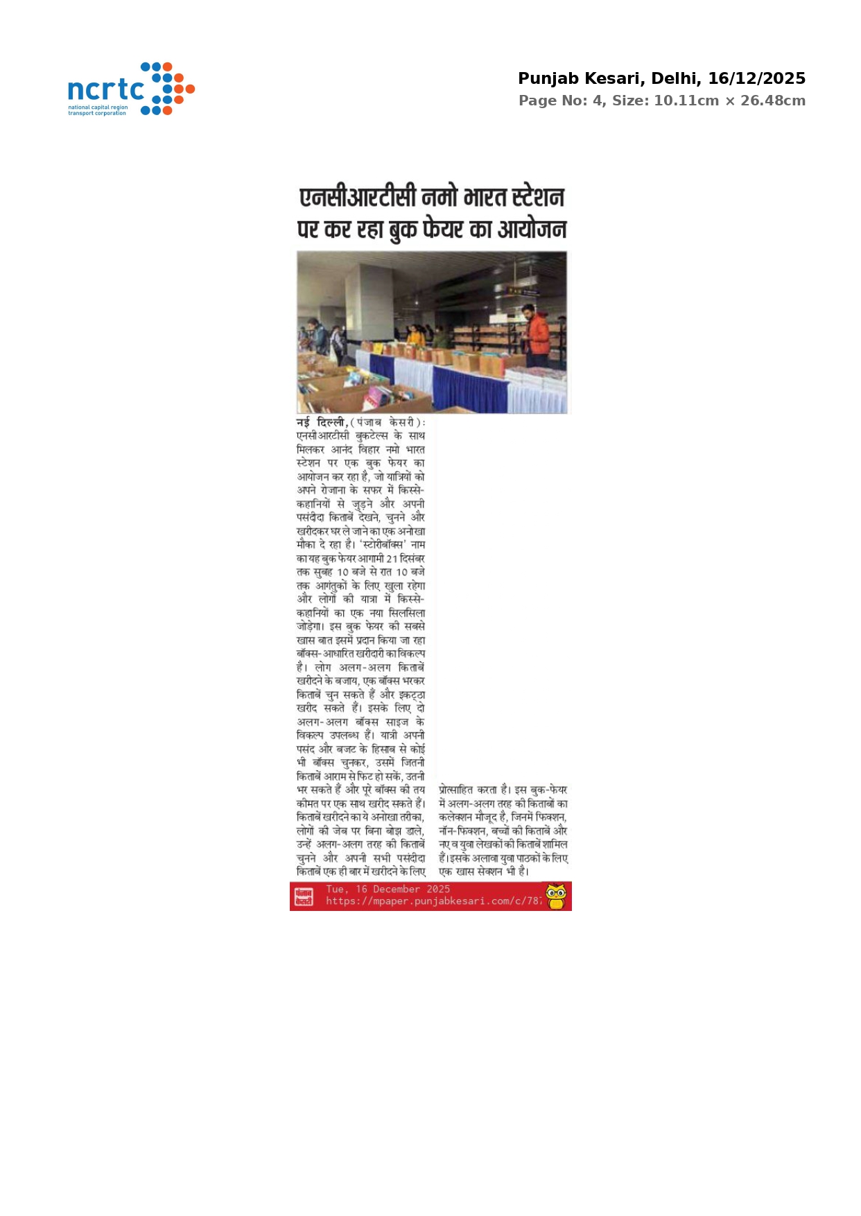 एनसीआरटीसी नमो भारत स्टेशन पर कर रहा बुक फेयर का आयोजन : Punjab Kesari