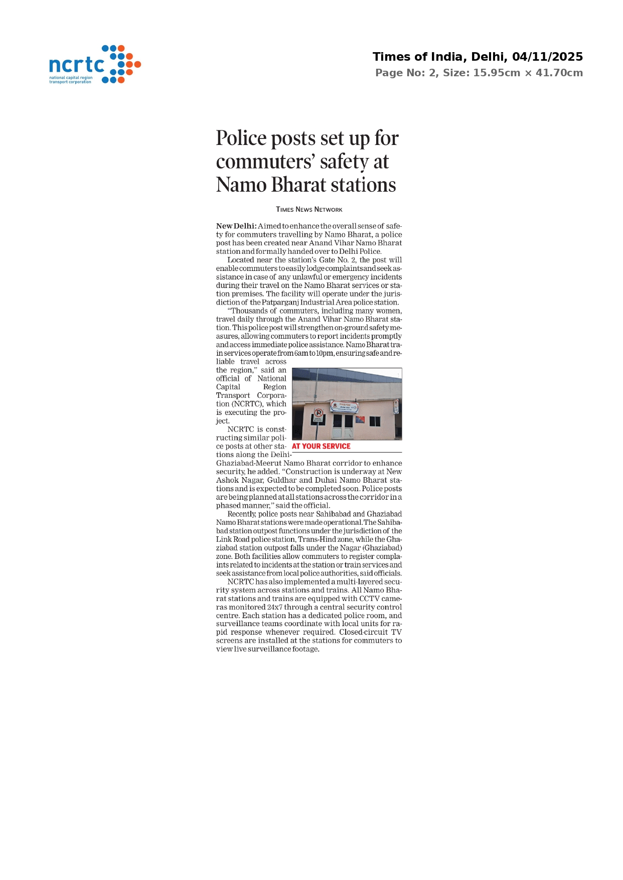 Police posts set up for commuters’ safety at Namo Bharat stations : Times of India