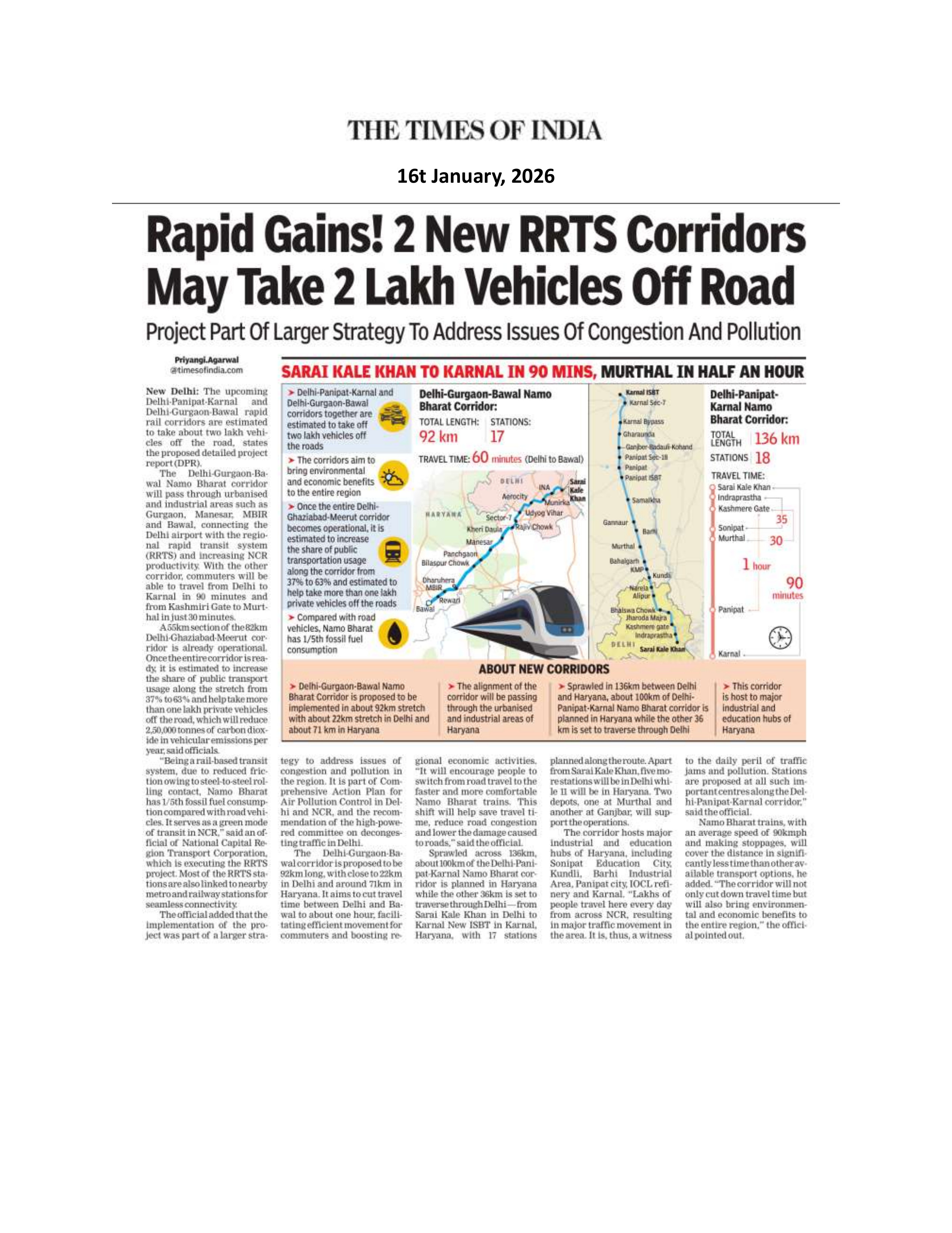 Rapid Gains! 2 New RRTS Corridors May Take 2 Lakh Vehicles Off Road : THE TIMES OF INDIA