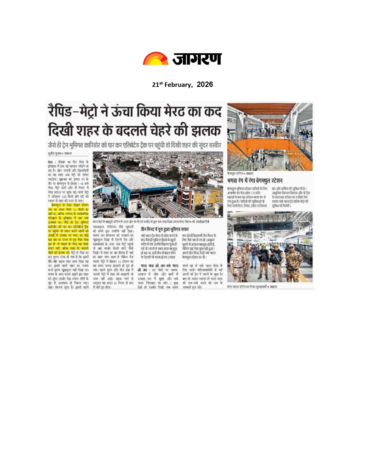 रैपिड-मेट्रो ने ऊंचा किया मेरठ का कद दिखी शहर के बदलते चेहरे की झलक : जागरण