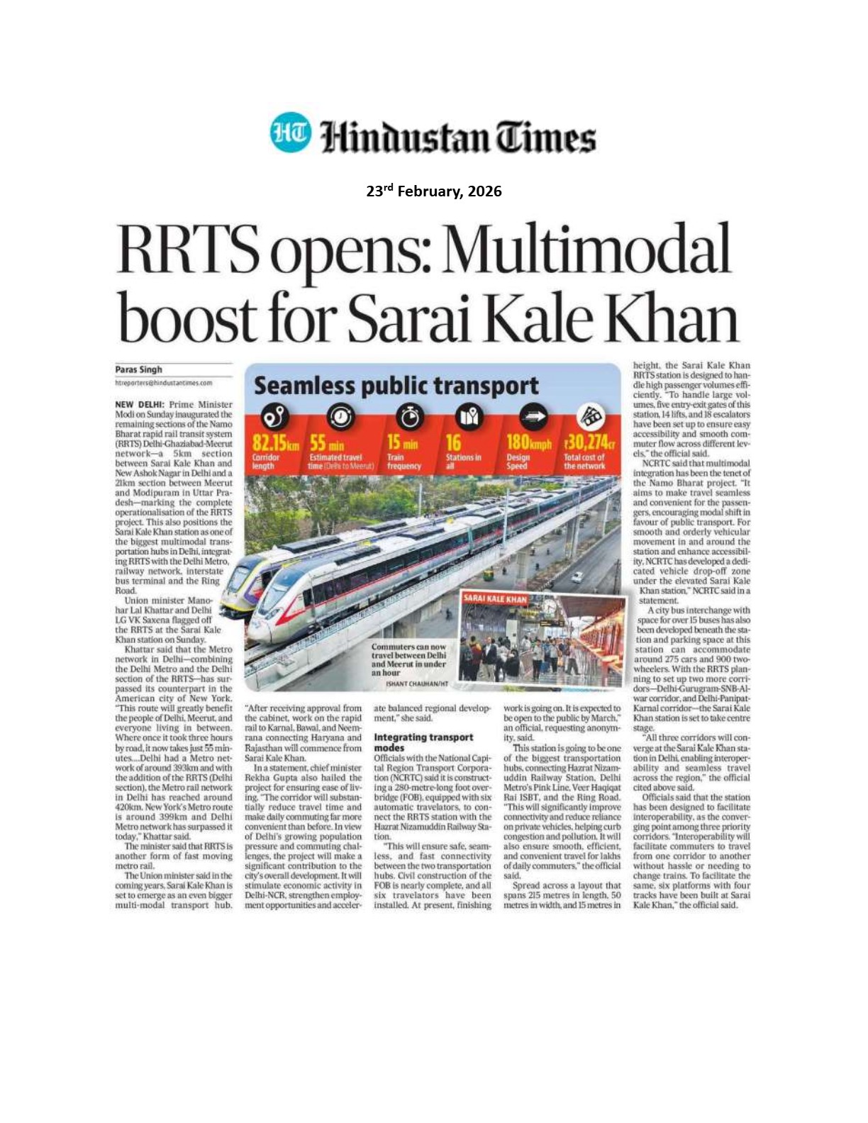 RRTS opens: Multimodal boost for Sarai Kale Khan : Hindustan Times